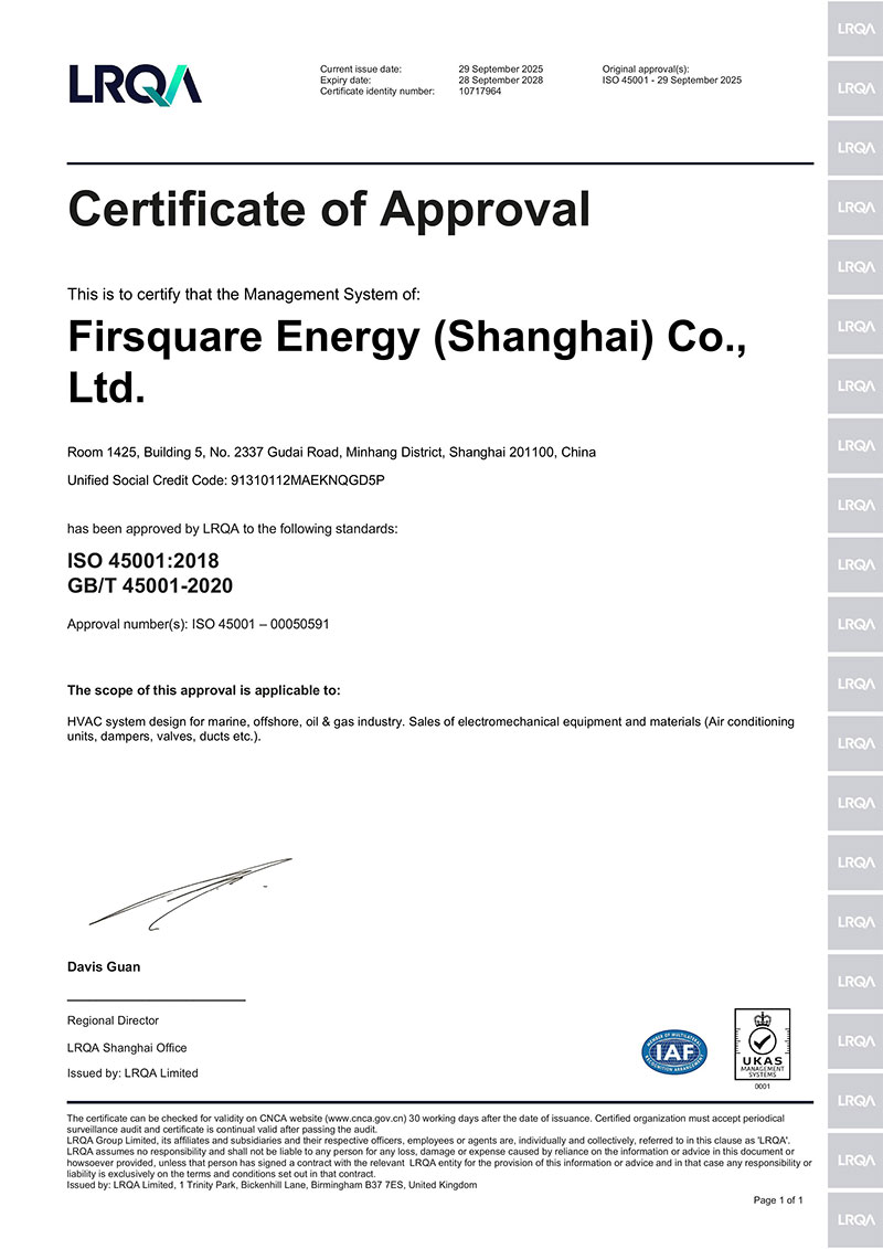 As an important part of Firsquare Group, Firsquare Energy Technology (Shanghai) Co., Ltd. focuses on marine and offshore engineering, oil, gas and chemicals, offshore wind power, nuclear, data centers, and new energy. The company provides one-stop HVAC solutions covering system design, core product supply, project construction, commissioning, and project management.